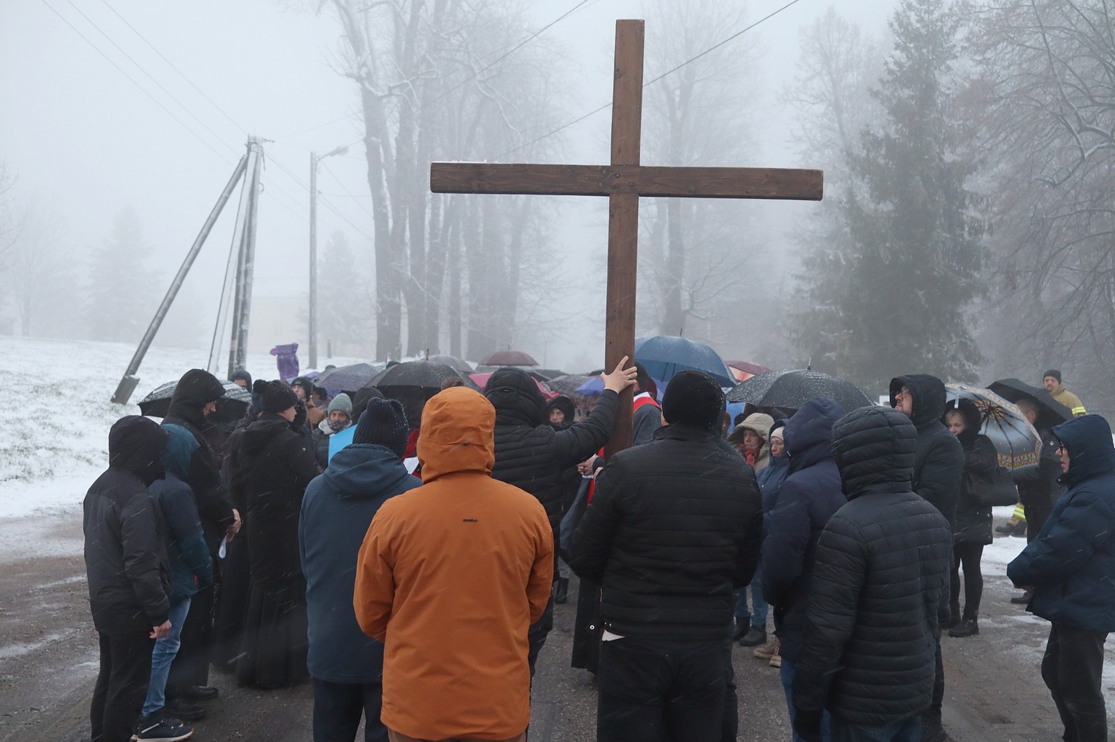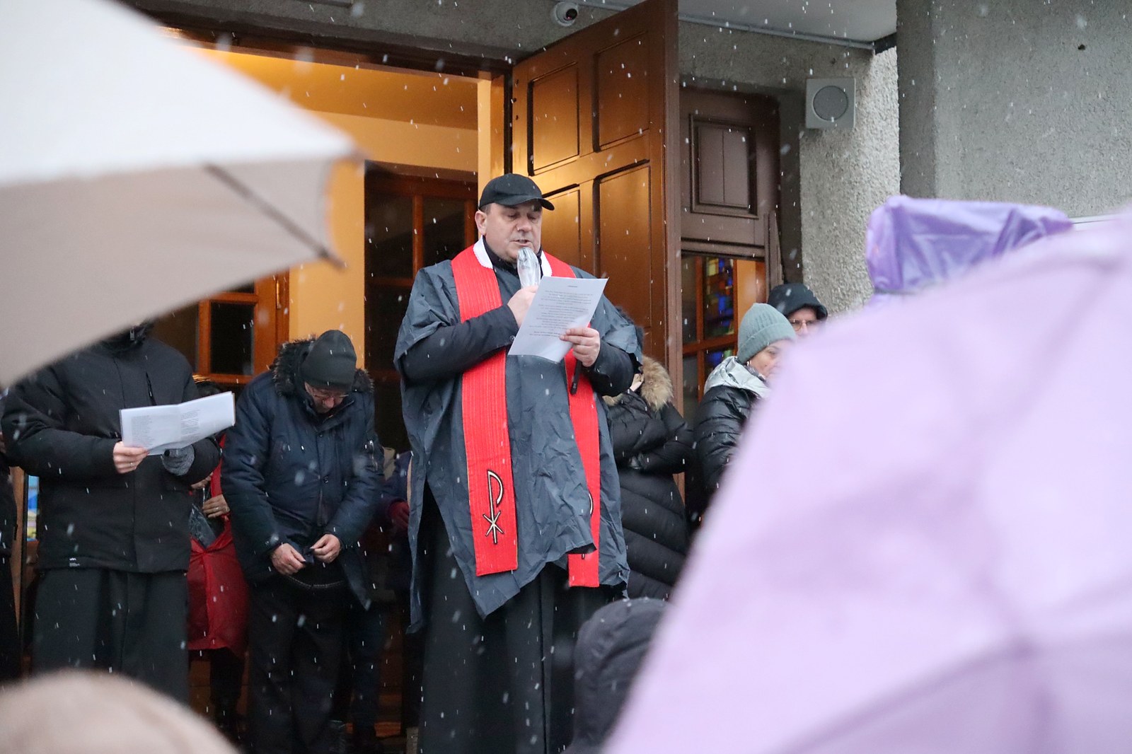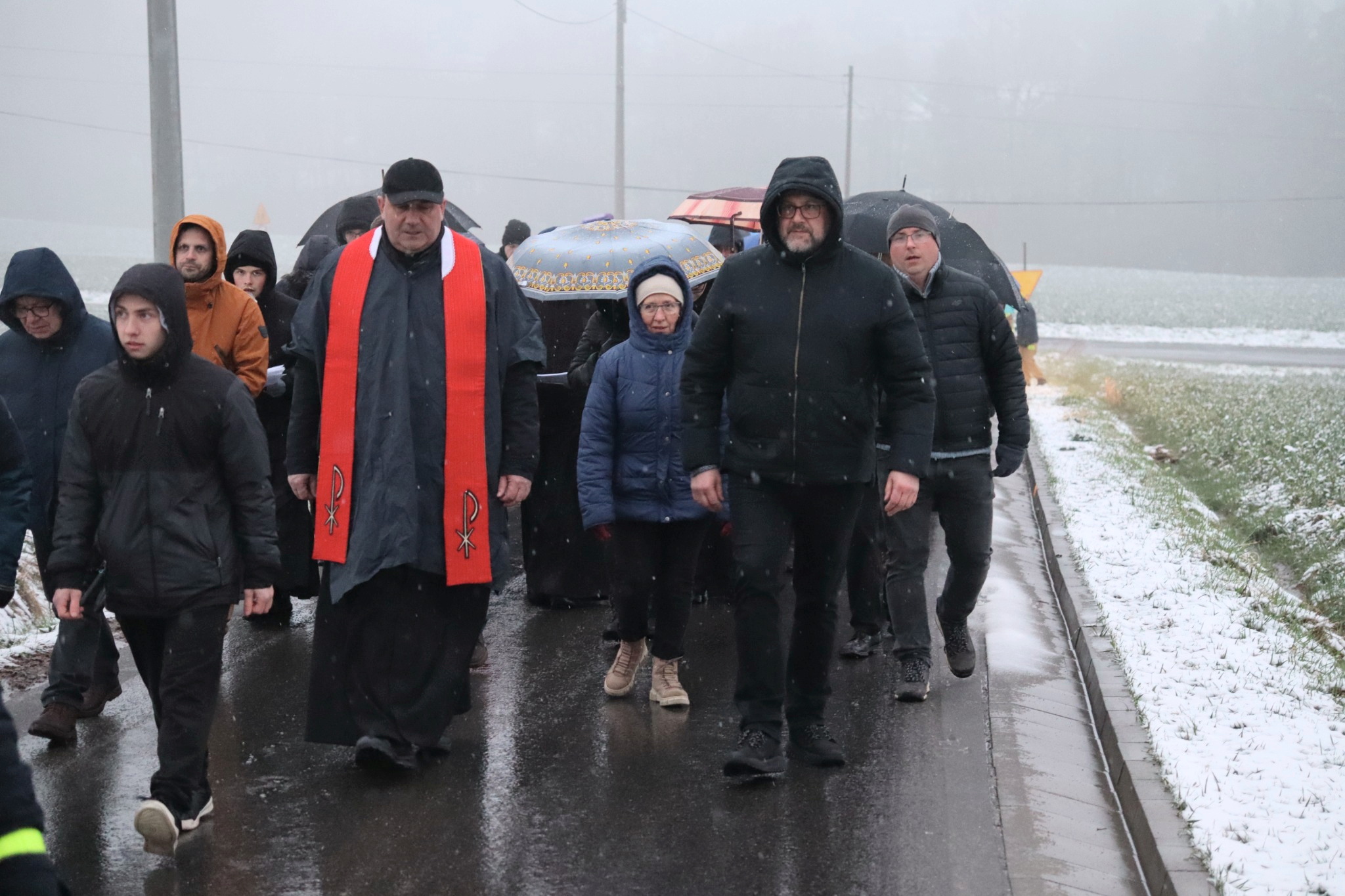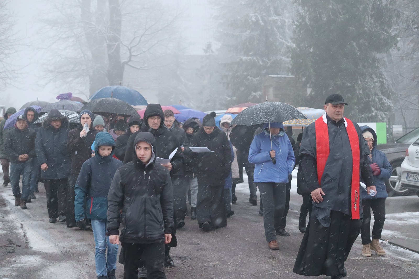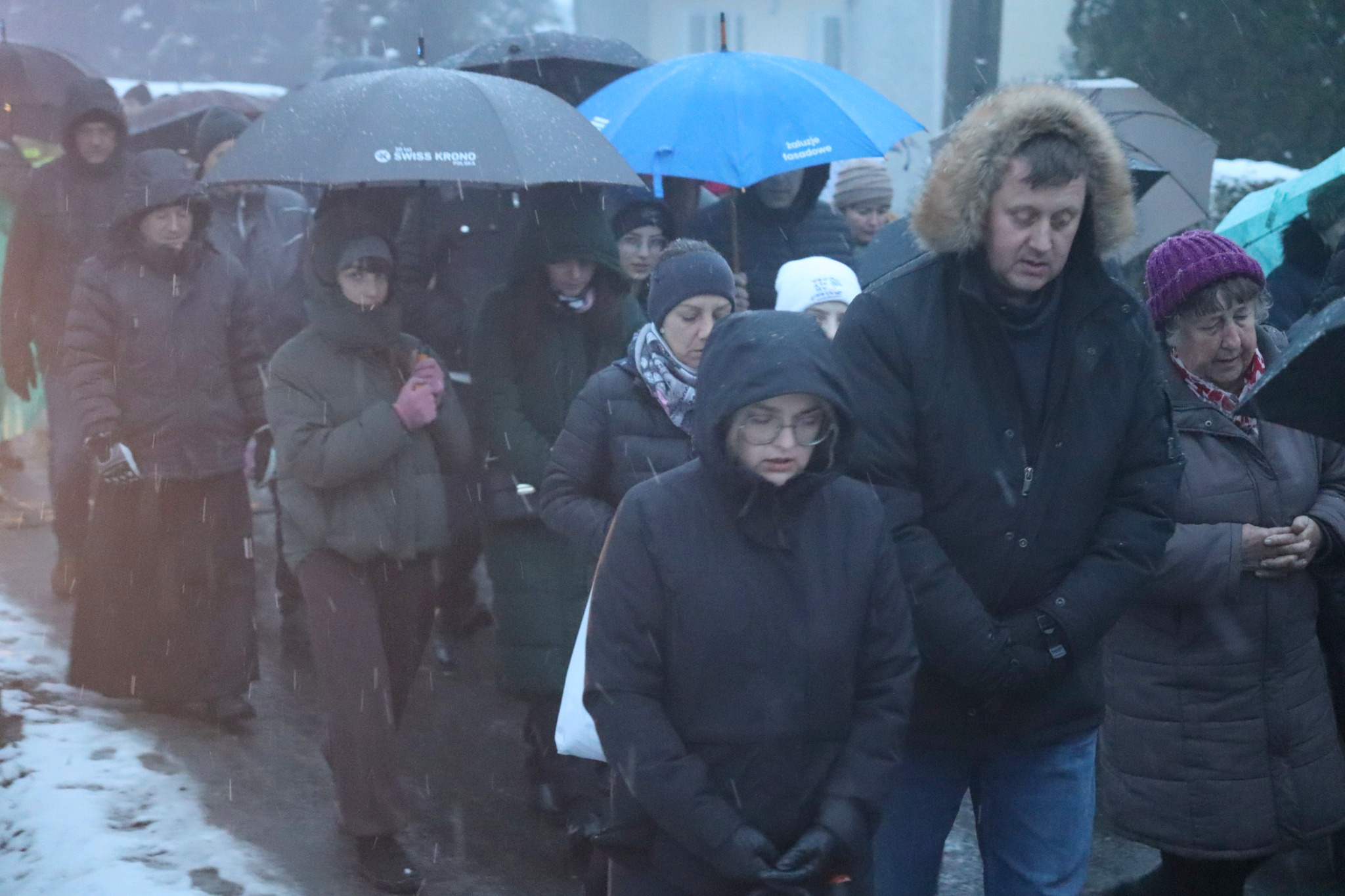 Pomimo niesprzyjających warunków pogodowych, w modlitwie wzięło udział wielu mieszkańców parafii.
