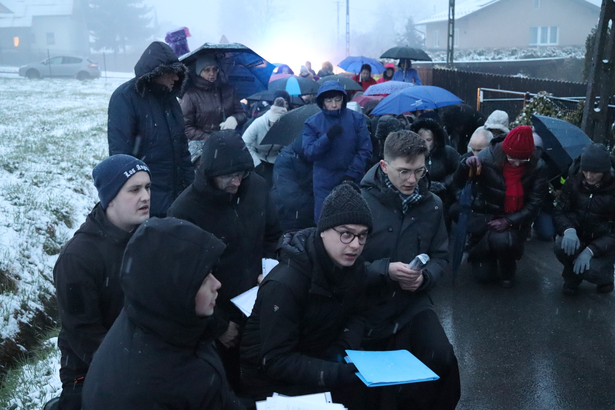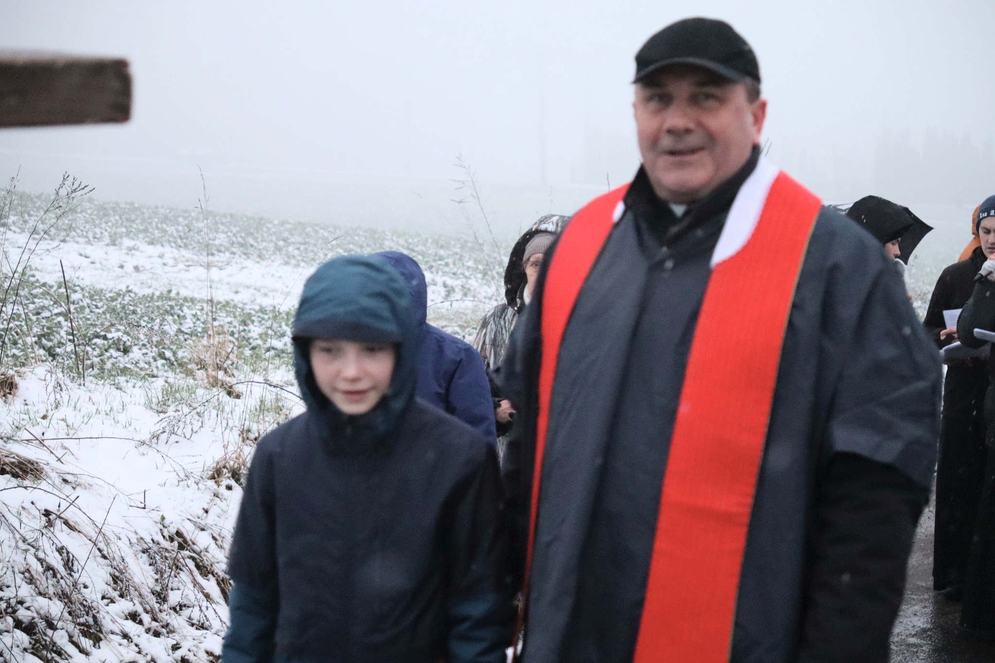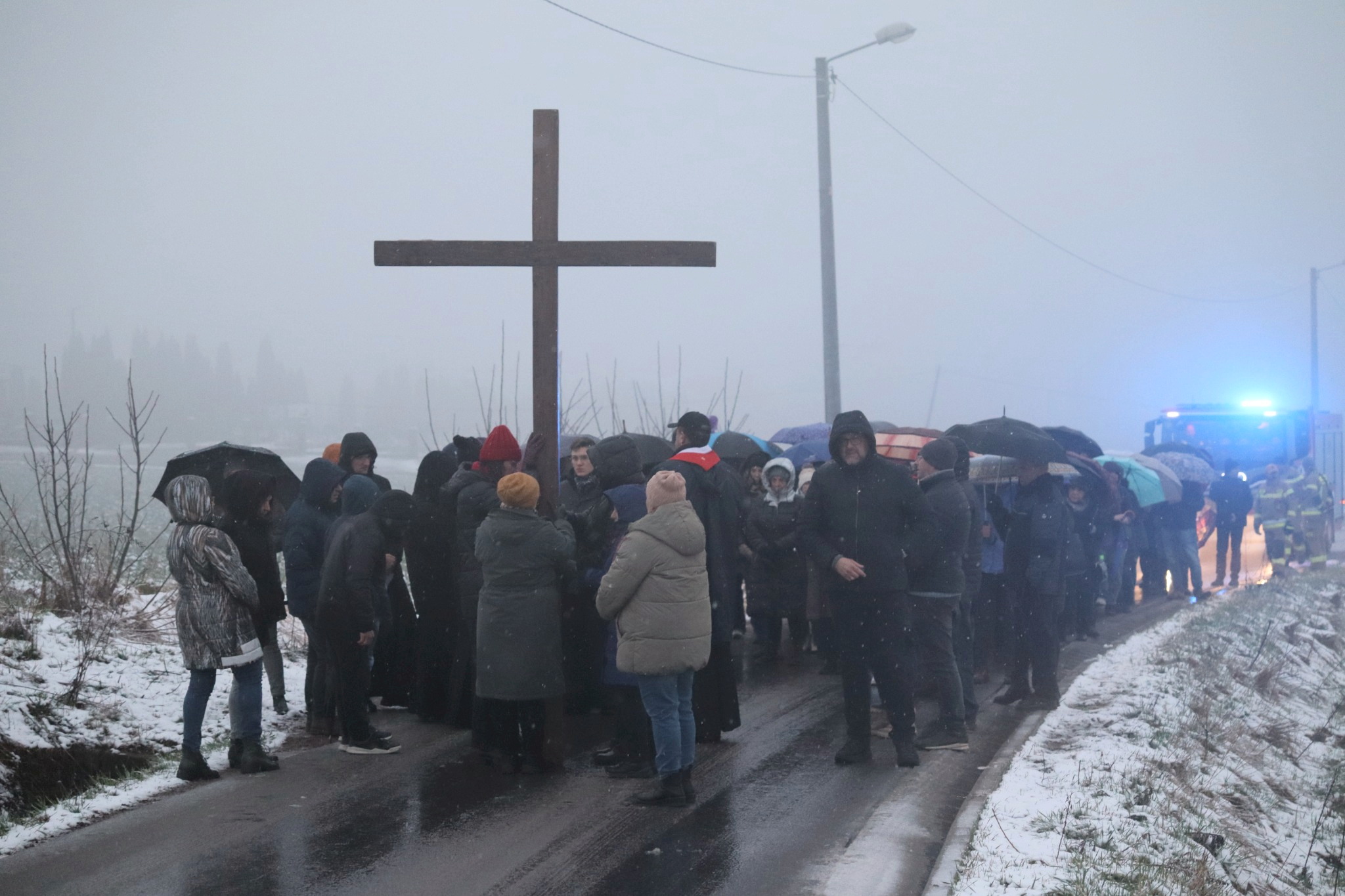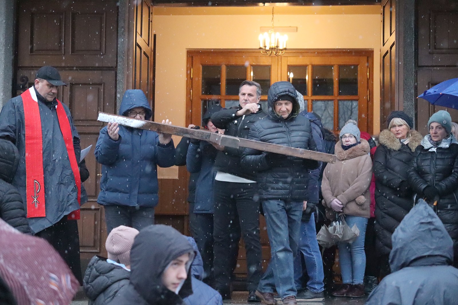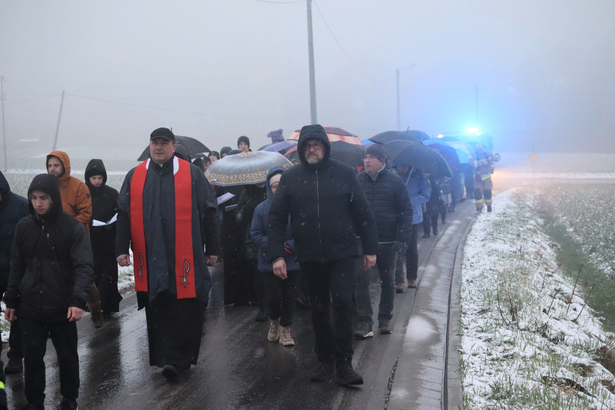 Pomimo niesprzyjających warunków pogodowych, w modlitwie wzięło udział wielu mieszkańców parafii.