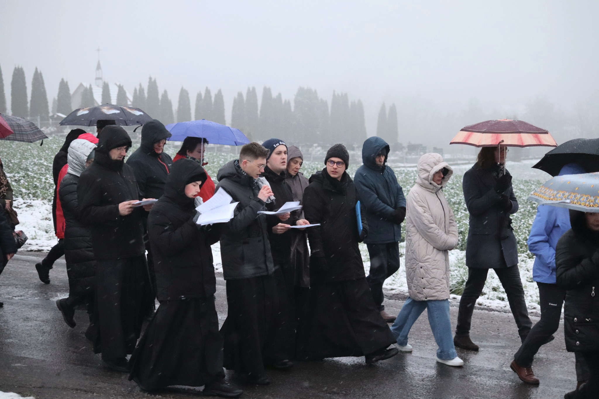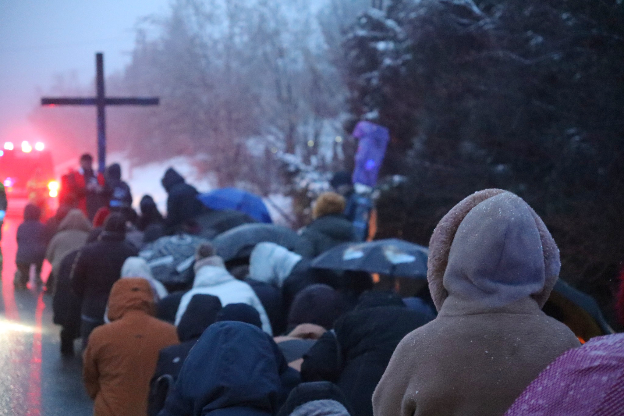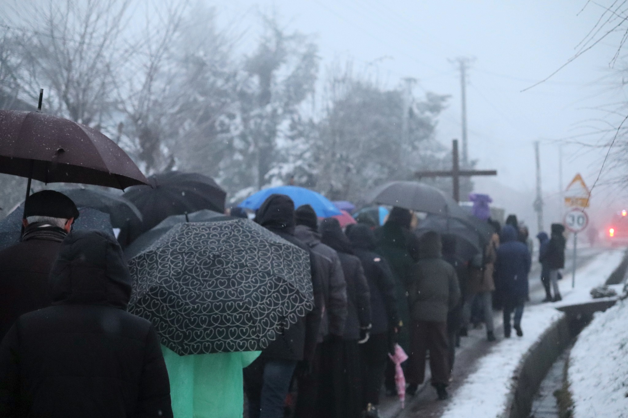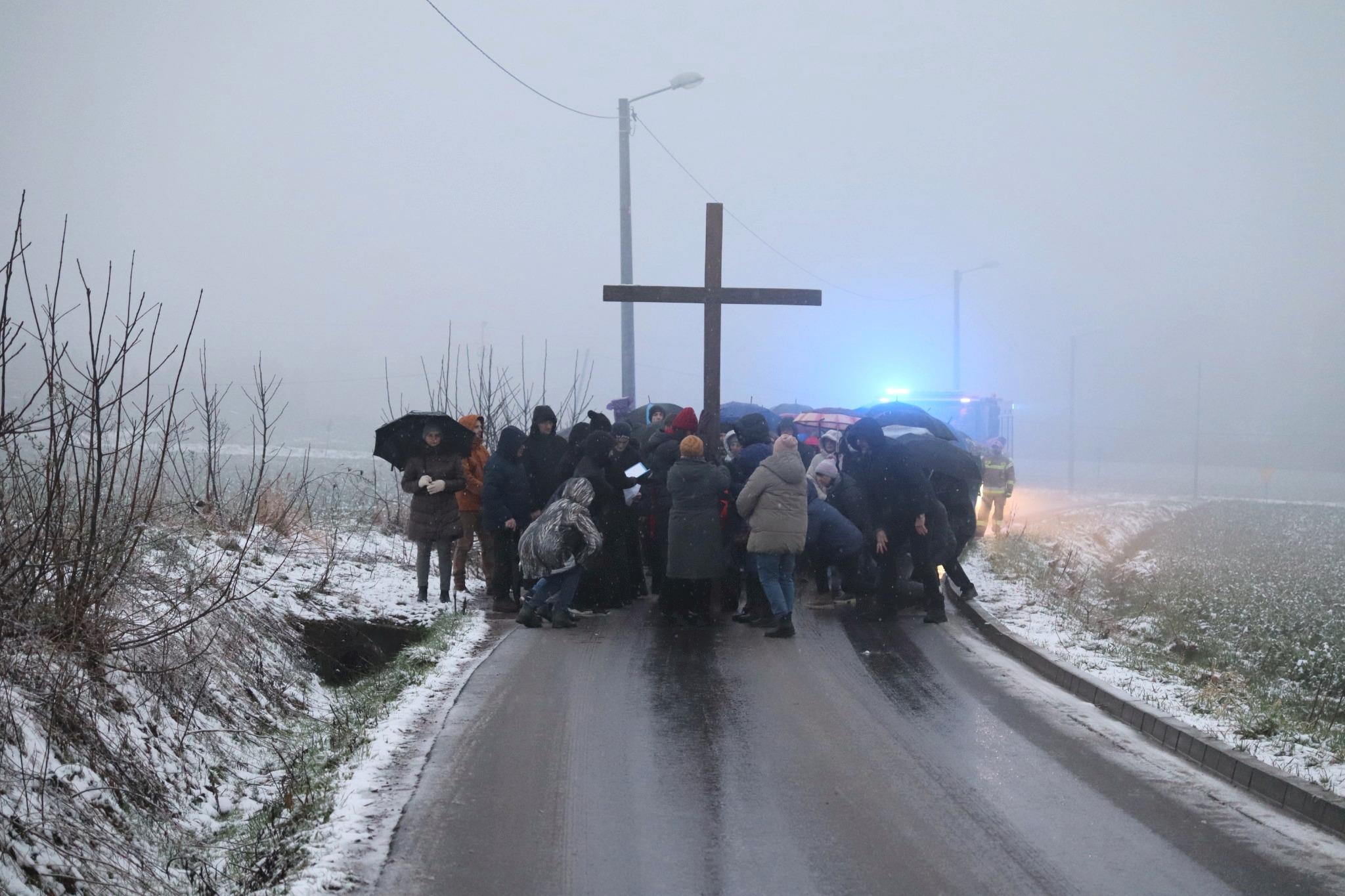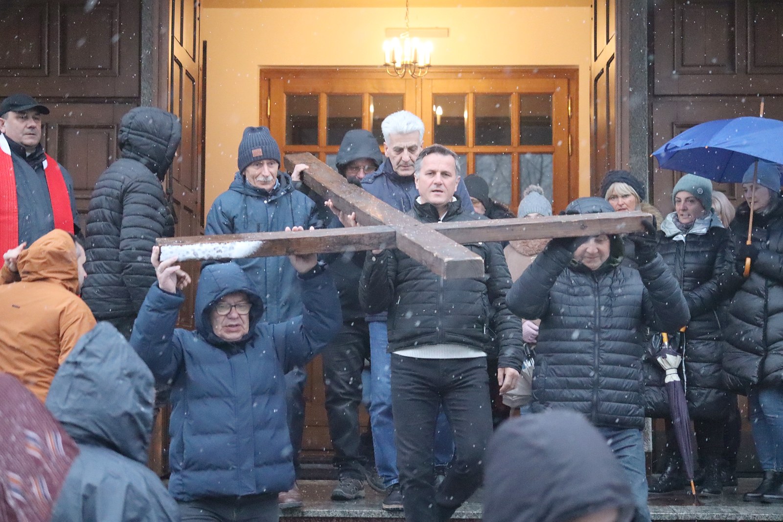 Pomimo niesprzyjających warunków pogodowych, w modlitwie wzięło udział wielu mieszkańców parafii.
