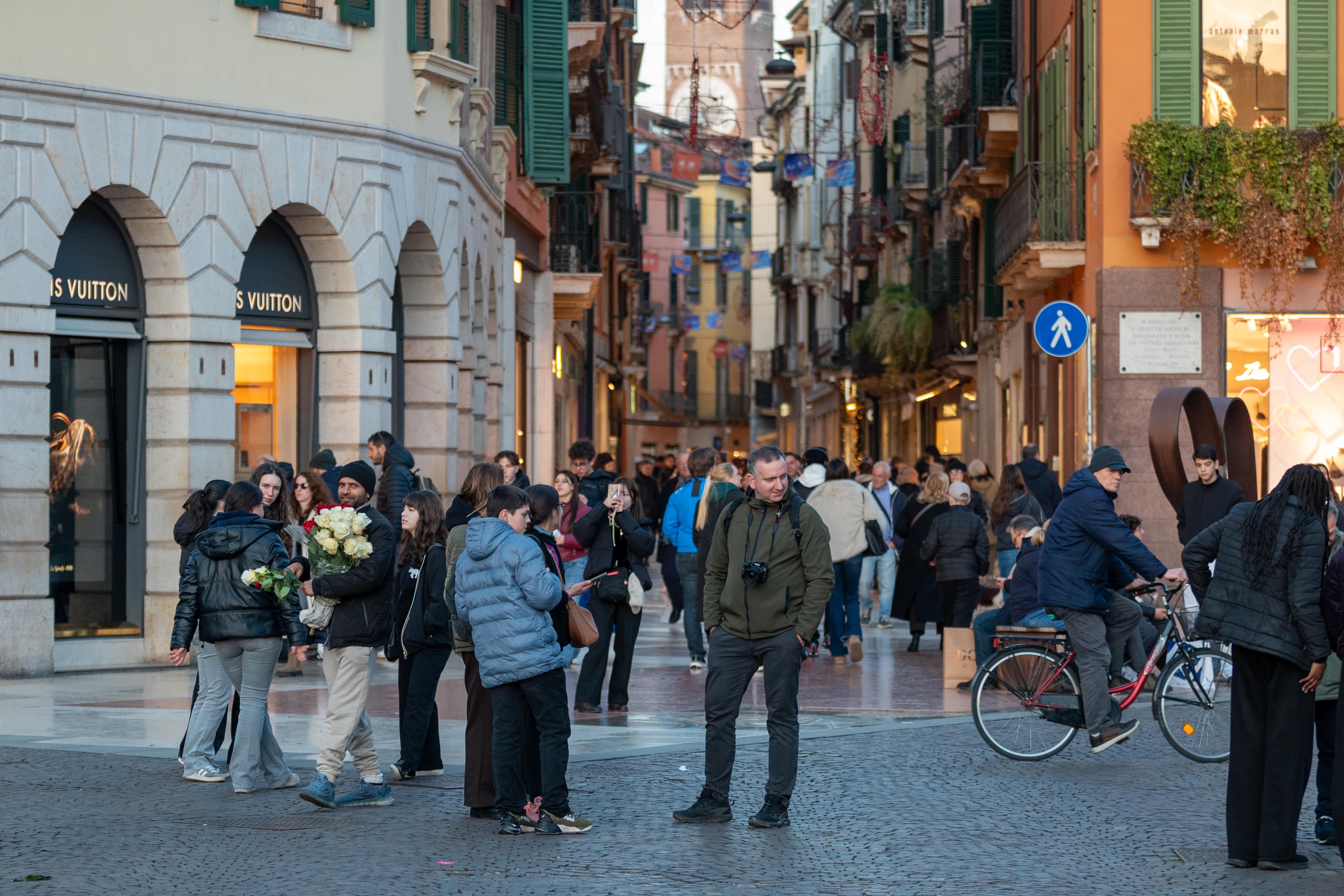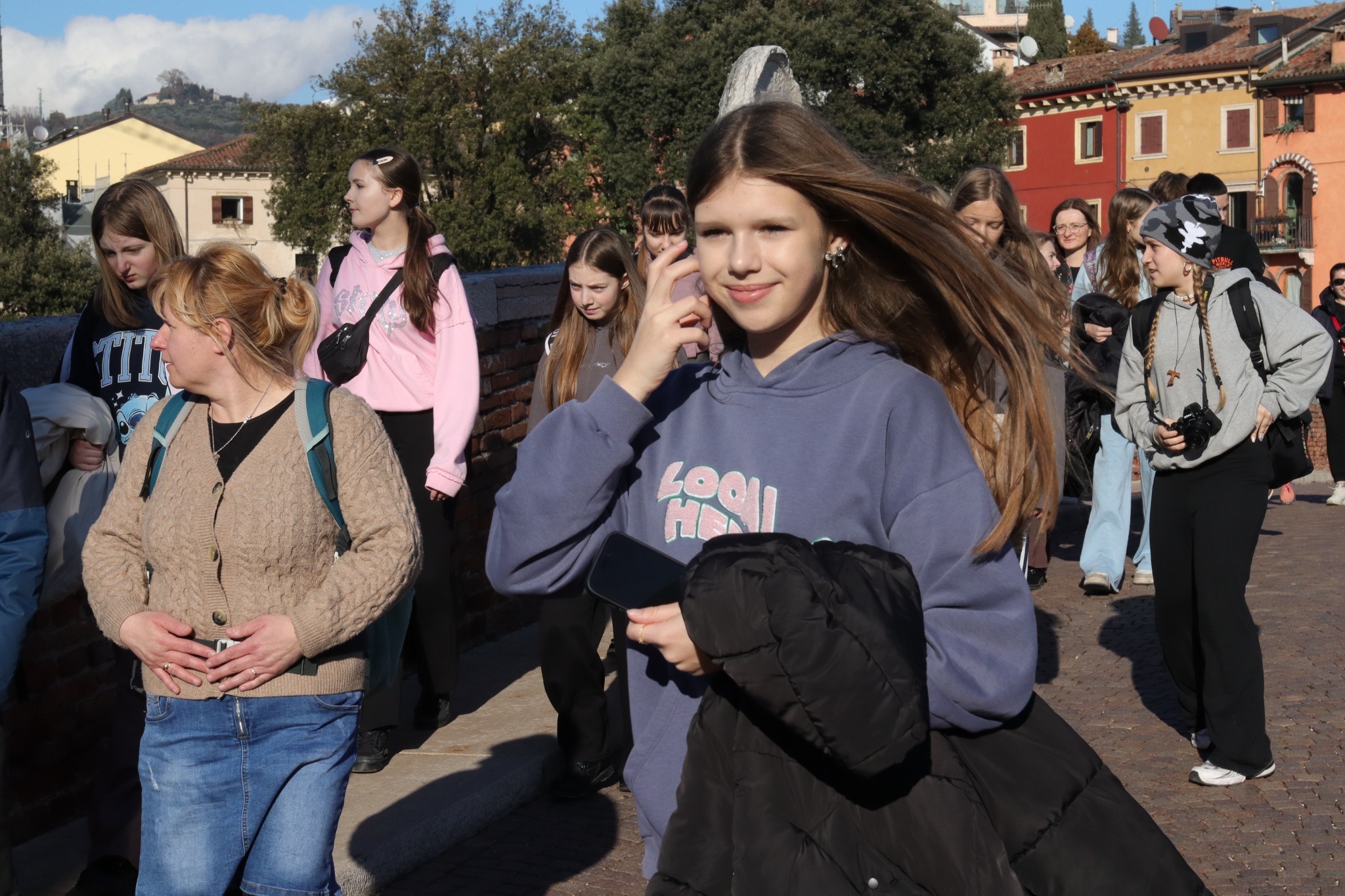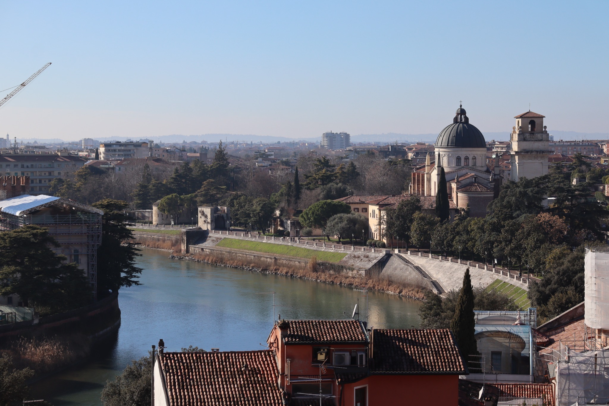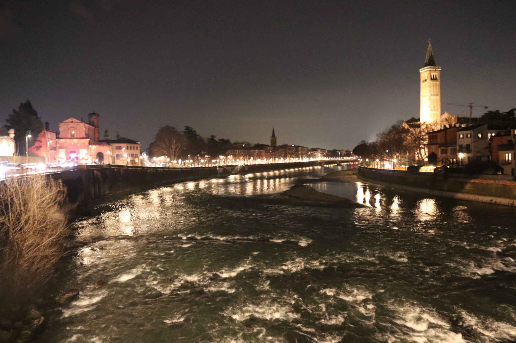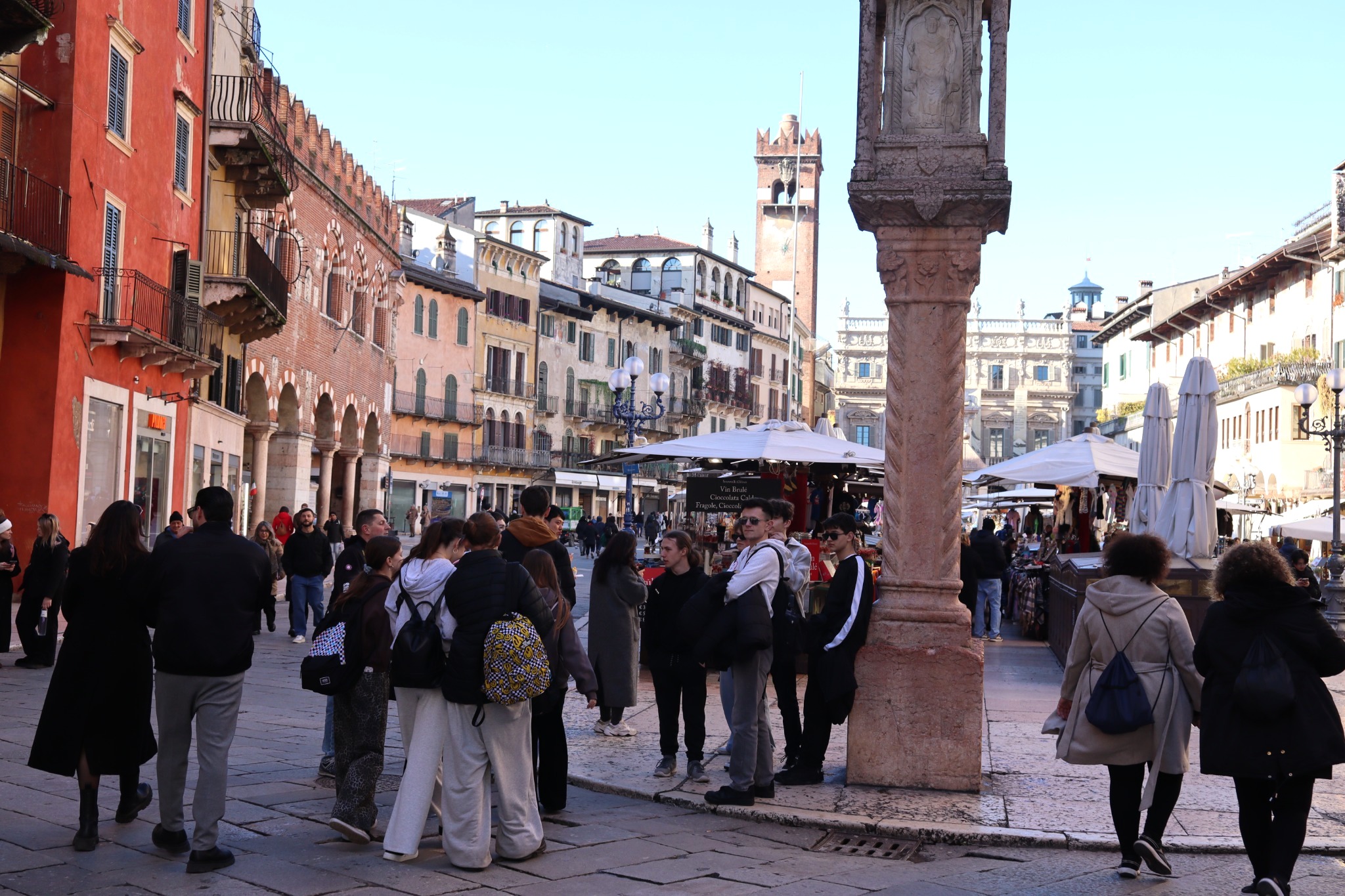 Potem Werona pokazała swój rytm na placach: Piazza delle Erbe, gdzie codzienność miesza się z historią, oraz Piazza dei Signori z akcentem Dantego i „poważniejszą” stroną miasta. Zwieńczeniem spaceru była Arena na Piazza Bra – mocny znak tego, jak przemija potęga świata, a zostaje świadectwo czasu zapisane w kamieniu. To naturalnie prowadziło do bardziej cichego momentu: przejścia w stronę rzeki i panoramy.