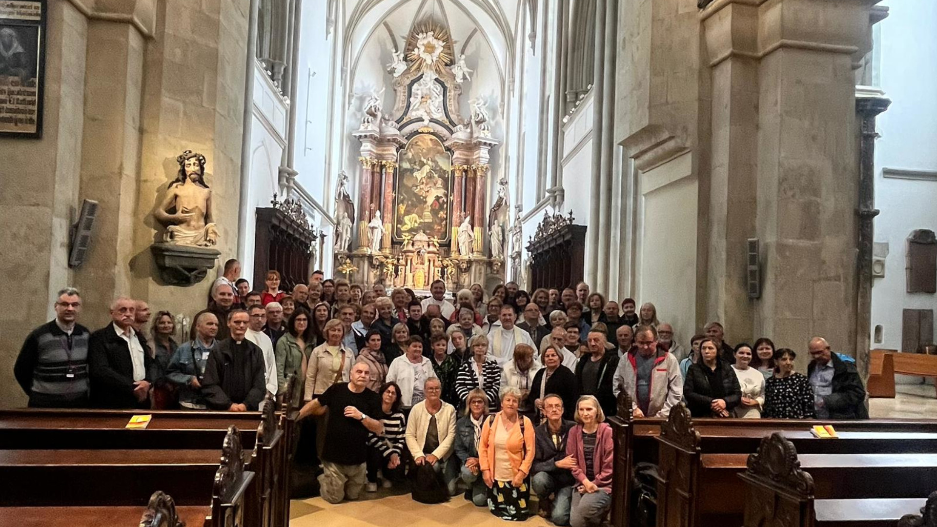 Pierwszym przystankiem na naszej trasie było miasteczko Wiener Neustadt, położone w północno-wschodniej części Austrii, w regionie zwanym Dolna Austria (Niederösterreich). Tam, w pięknej XIII-wiecznej katedrze Wniebowzięcia NMP i św. Ruperta, uczestniczyliśmy we Mszy Świętej sprawowanej przez trzech naszych kapłanów – michalitów: księży Stanisława i Marcina, podróżujących z pilotem panem Karolem oraz kierowcami — panią Joanną i panem Rafałem, oraz księdza Krzysztofa z drugiego autokaru, którym kierowali dwaj panowie o imieniu Marcin, a pilotowała pani Dorota.
